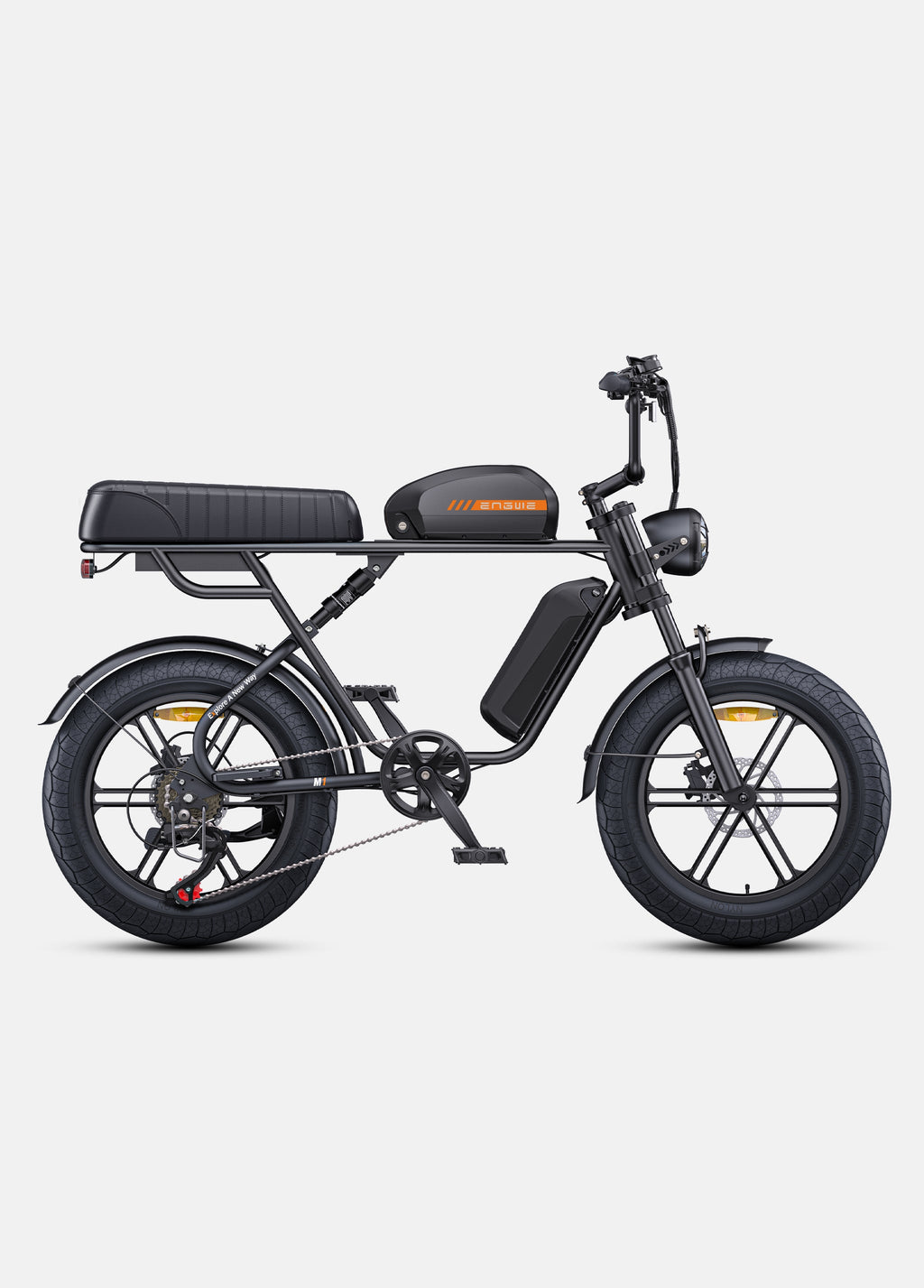 The ENGWE M1 is a versatile and stylish fat ebike designed to meet European standards. It features a 250W motor with 65Nm of torque, ensuring powerful performance for a variety of terrains. The long range e bike comes equipped with dual seats for added convenience, 20x4.0 fat tires for enhanced stability, and a range of up to 170 kilometers on a single charge. Safety is prioritized with hydraulic brakes and turn signals, while the vibrant LCD color display offers real-time riding information. With its motorcycle-styled design, the ENGWE M1 seamlessly combines practicality and aesthetics for an exceptional e-biking experience.